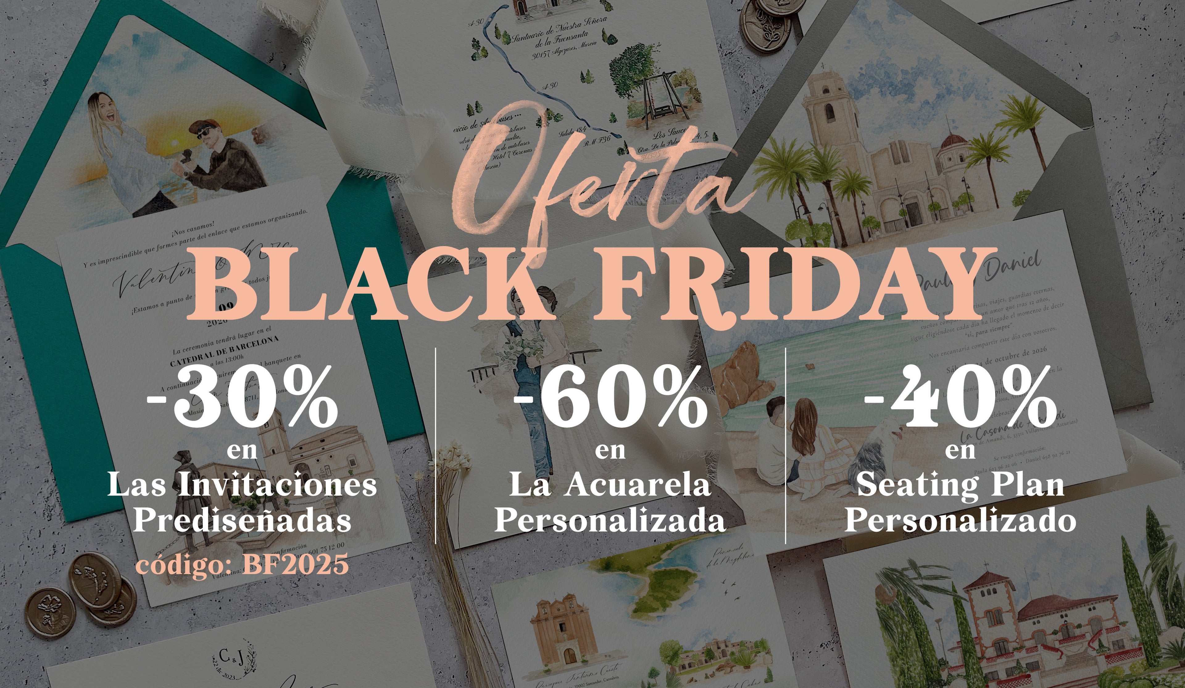 Cada pareja es única por eso, nos adaptamos a las necesidades y al presupuesto de cada cliente. Indícanos cuántas invitaciones necesitas, el formato que prefieres y si deseas incluir acuarelas personalizadas. Con esta información, elaboraremos un presupuesto totalmente a medida, pensado para ajustarse a tus expectativas y a tu bolsillo, sin renunciar a la elegancia y al detalle que hacen especiales nuestras invitaciones.