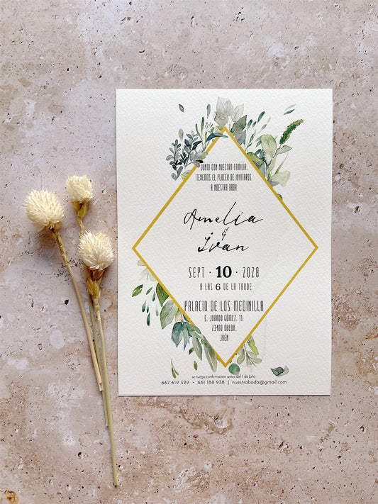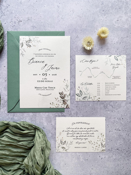 Invitación de Boda Hojas Verdes