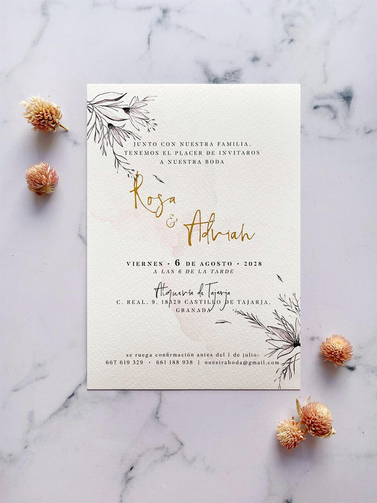 Invitación de Boda Flores Acuarelas