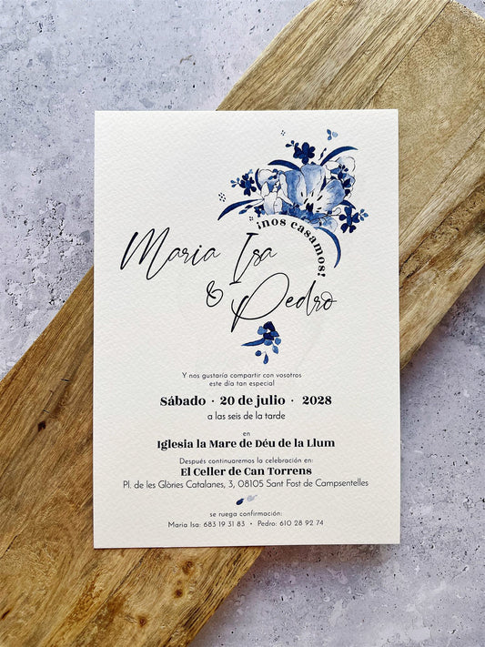Invitación de Boda Flores Azules